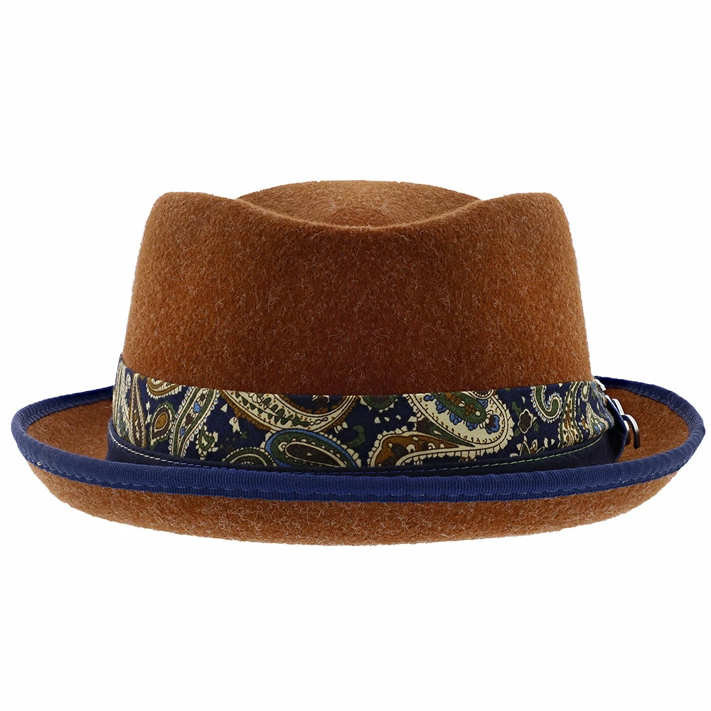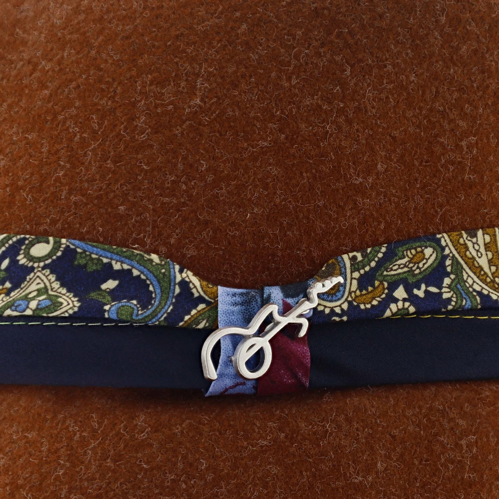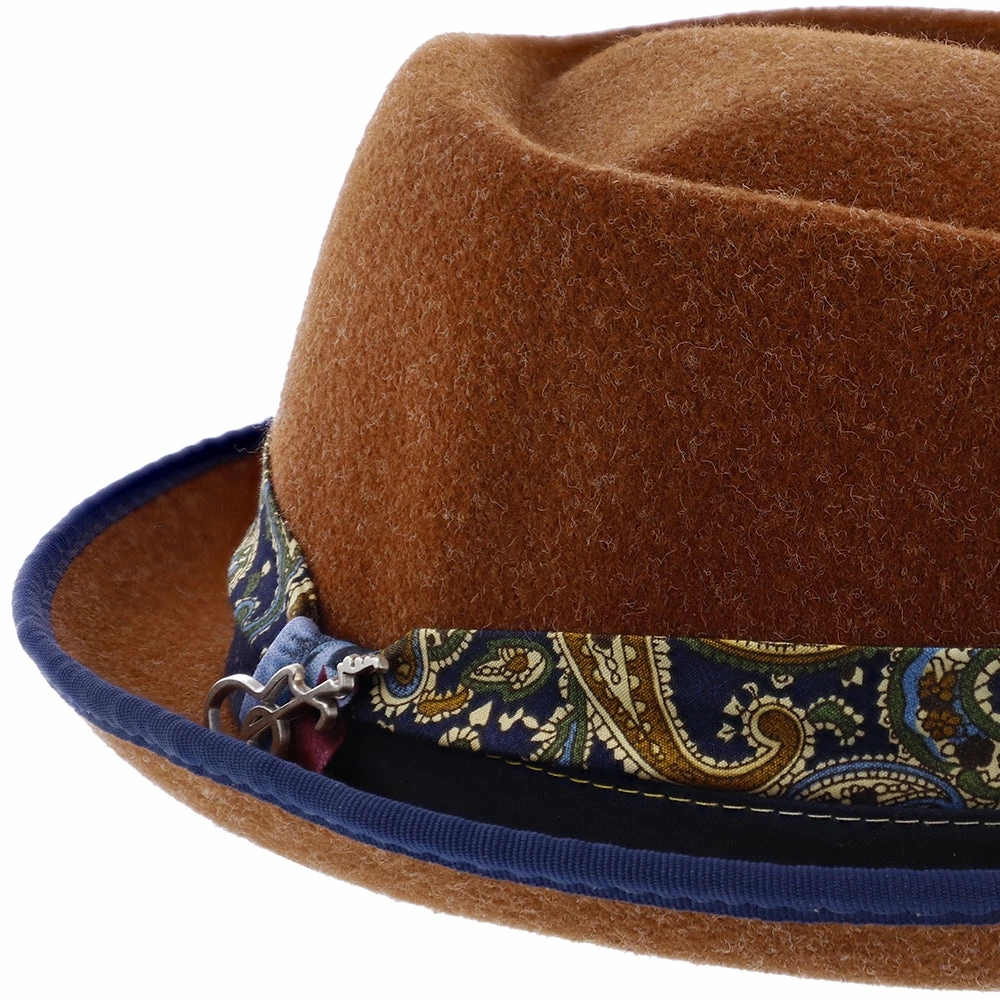 Cast – Santana Wool Felt Fedora Hat. ProvatoKnit Fedora with Bound 2″ Brim. Paisley Band with Overlay and Guitar Hat in.