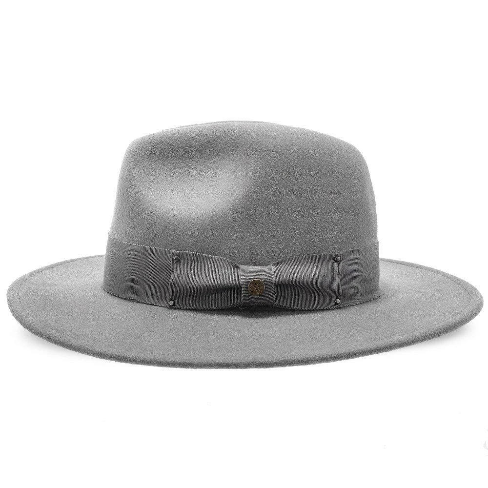 The Empire consists of a 100% Australian wool felt, features a center dent crown, 2 3/4″ brim, grosgrain ribbon hat band with pinned side bow, faux leather sweatband, removable side feather and a Walrus Hats side pin.