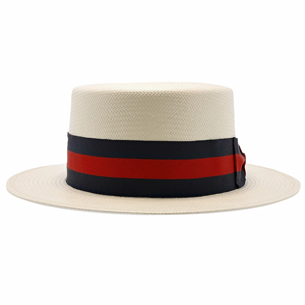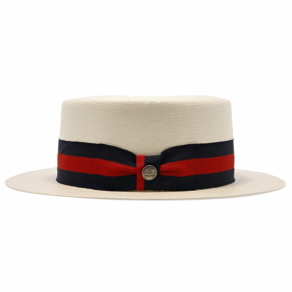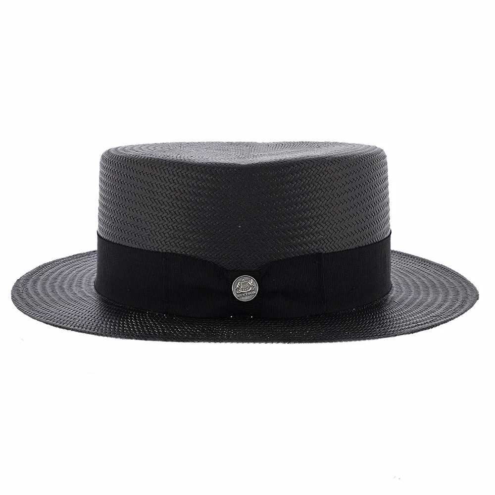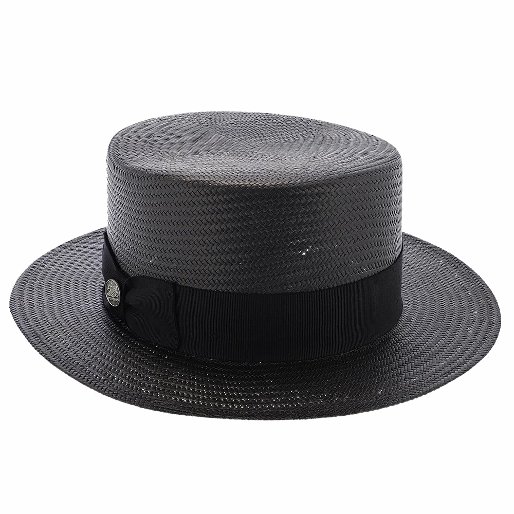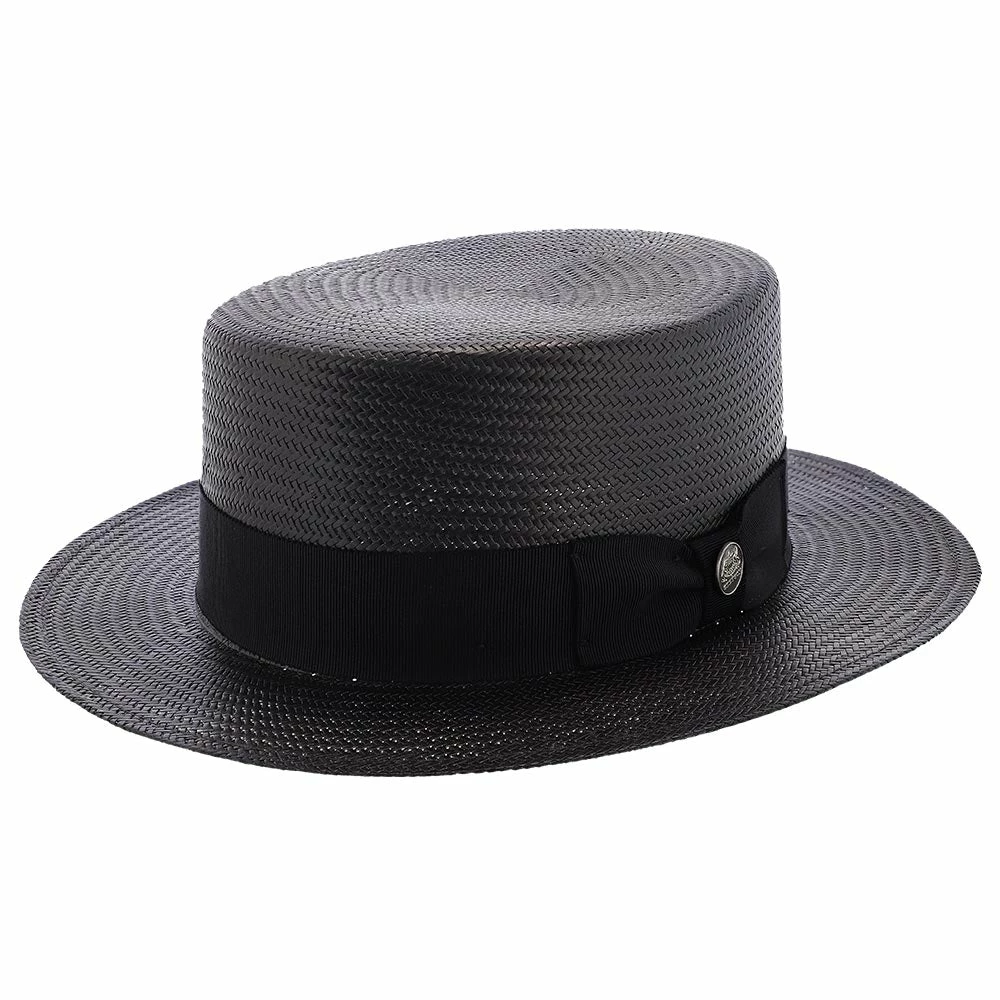 Get your Jay Gatsby look on, with the Keeneland Shantung Straw Skimmer Hat by Stetson. The Keeneland hat is modeled after the classic boater hats from the 1920s. This hat will draw attention with the Prohibition Era look at any party. The hat is made of 100% shantung straw, with a firm finish and durable material. The hat band is made of a grosgrain ribbon with a side bow.