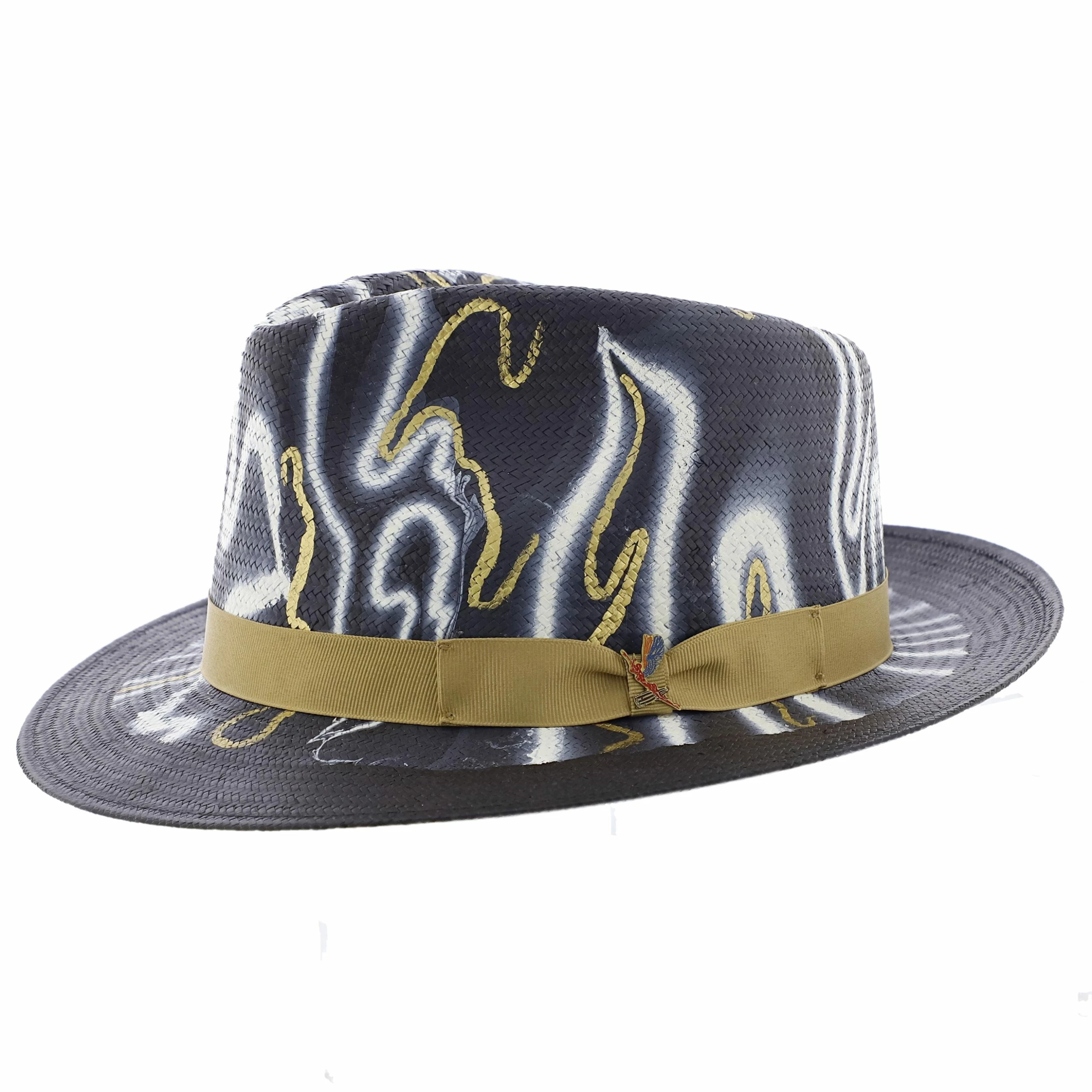 Looks can be deceiving, but your look stylish looks will never be deceptive. Santana’s shantung men’s fedora will keep you honest and your friends on their toes. No two hats are alike, the effect is created with a technique called Hydropainting. Each one is done by hand.