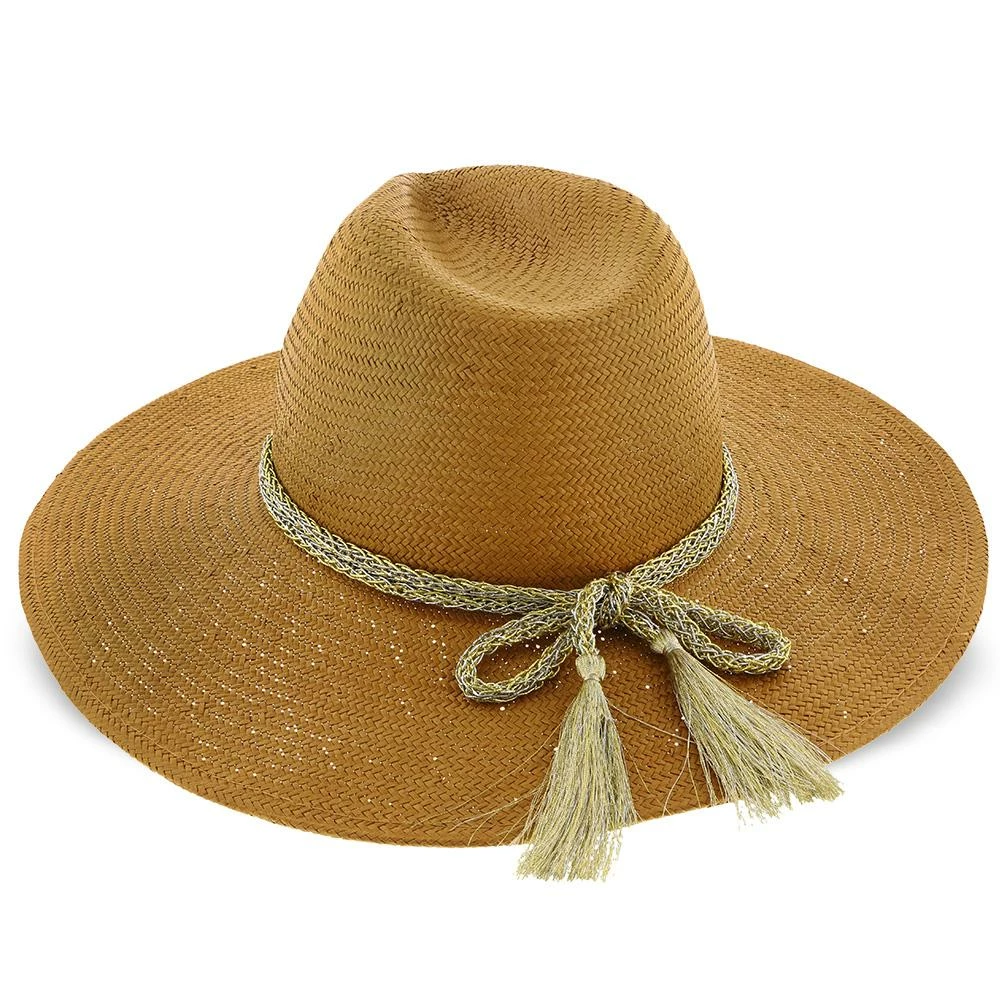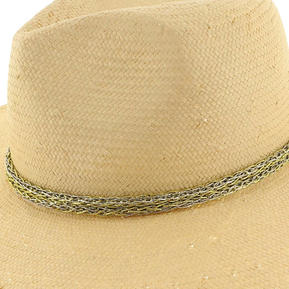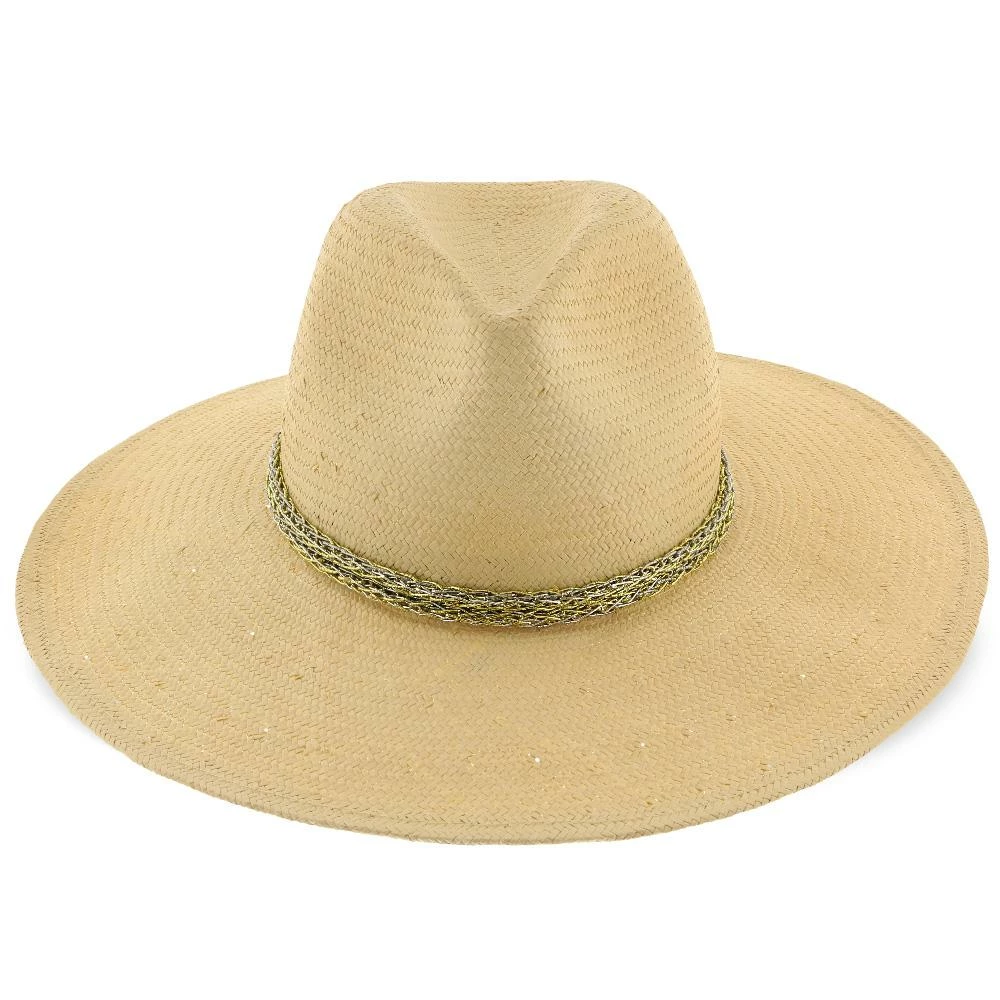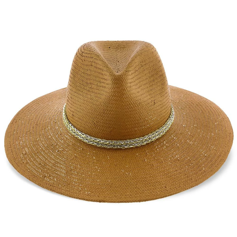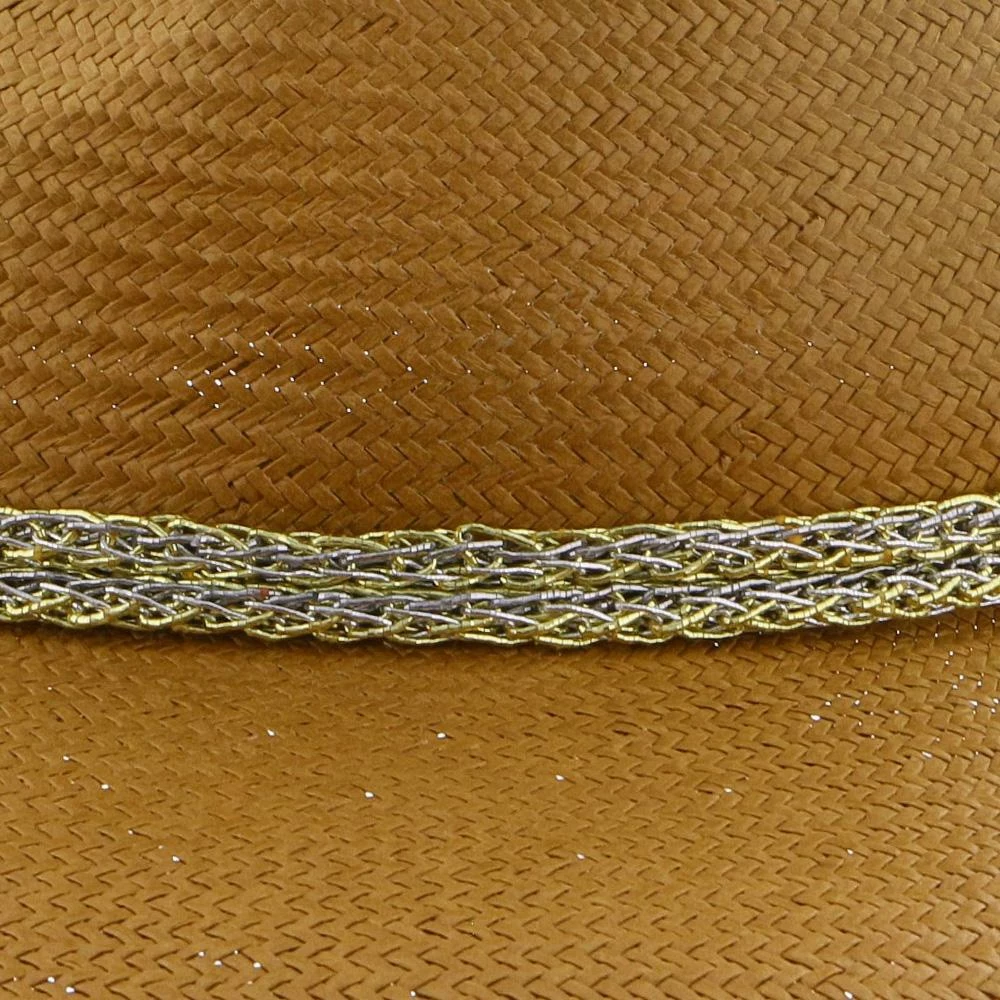 Palmara – Brooklyn Tea Straw Pinch Front Fedora Hat W/ Metallic Band – BKN1510