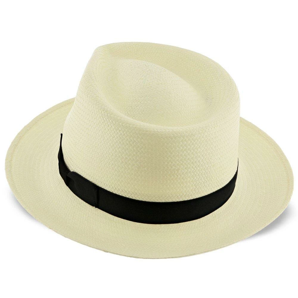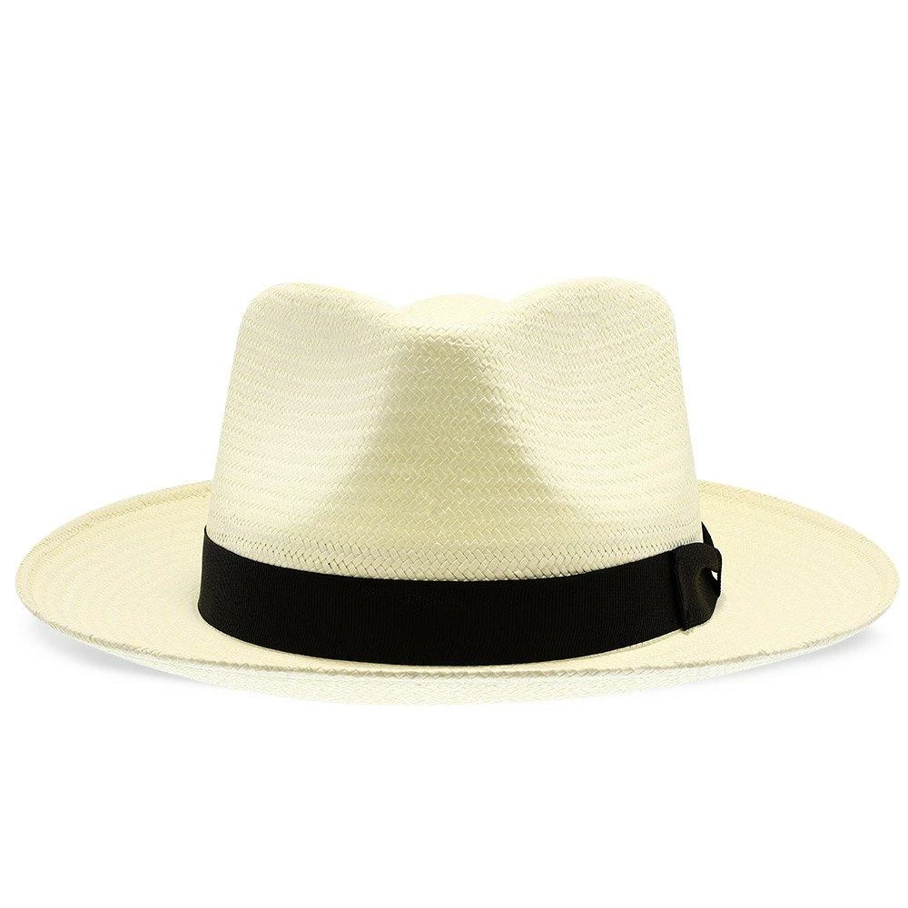 The dashing hat is made of light-weight panama, straw which will give you that “barely there” feel. The hat is perfect for keeping you cool and the sun off your face, while the cotton sweatband leaves you dry. A black hat band wraps the look, while the pinched front and teardrop crown provide the fedora an added flair and appeal.