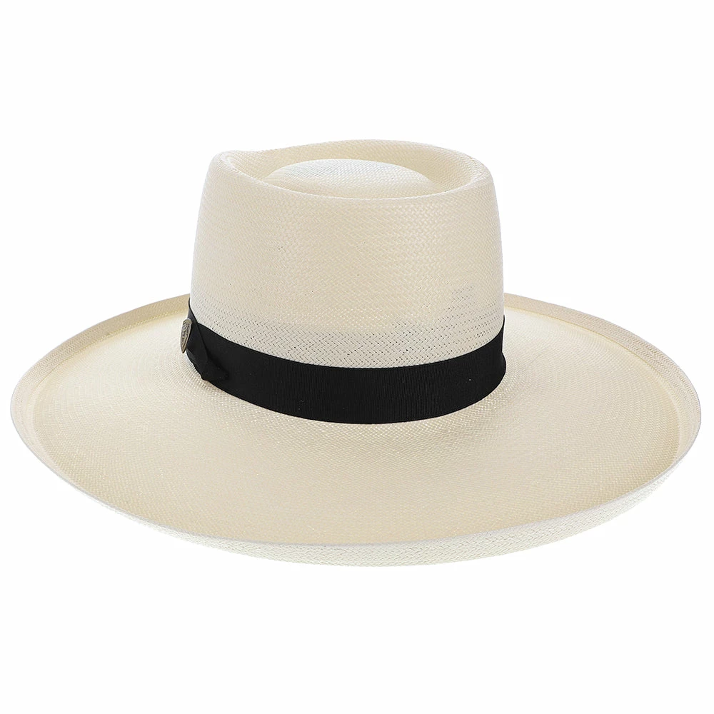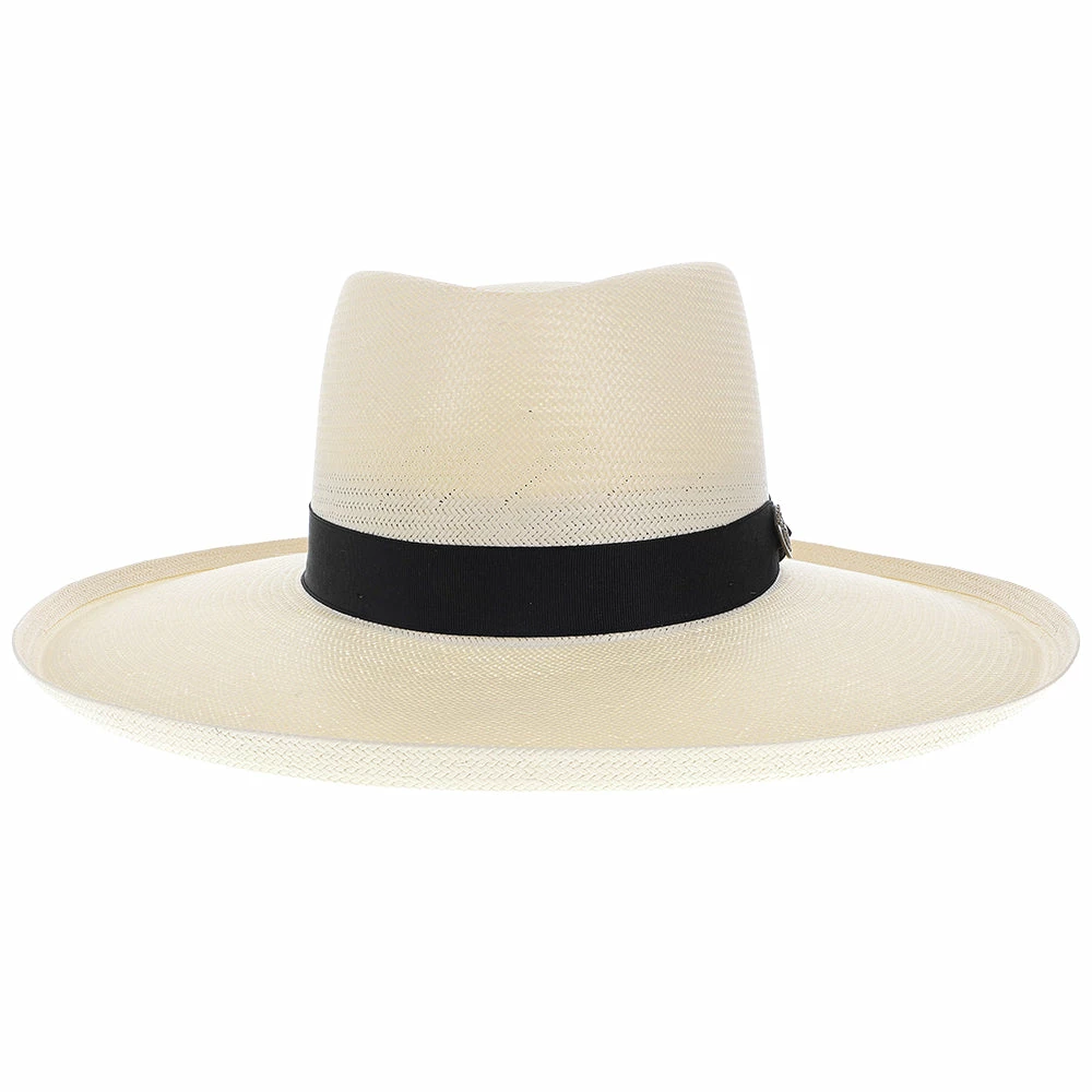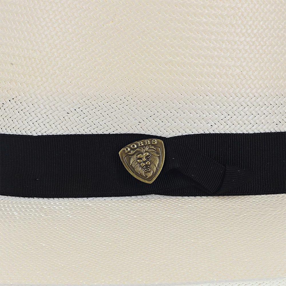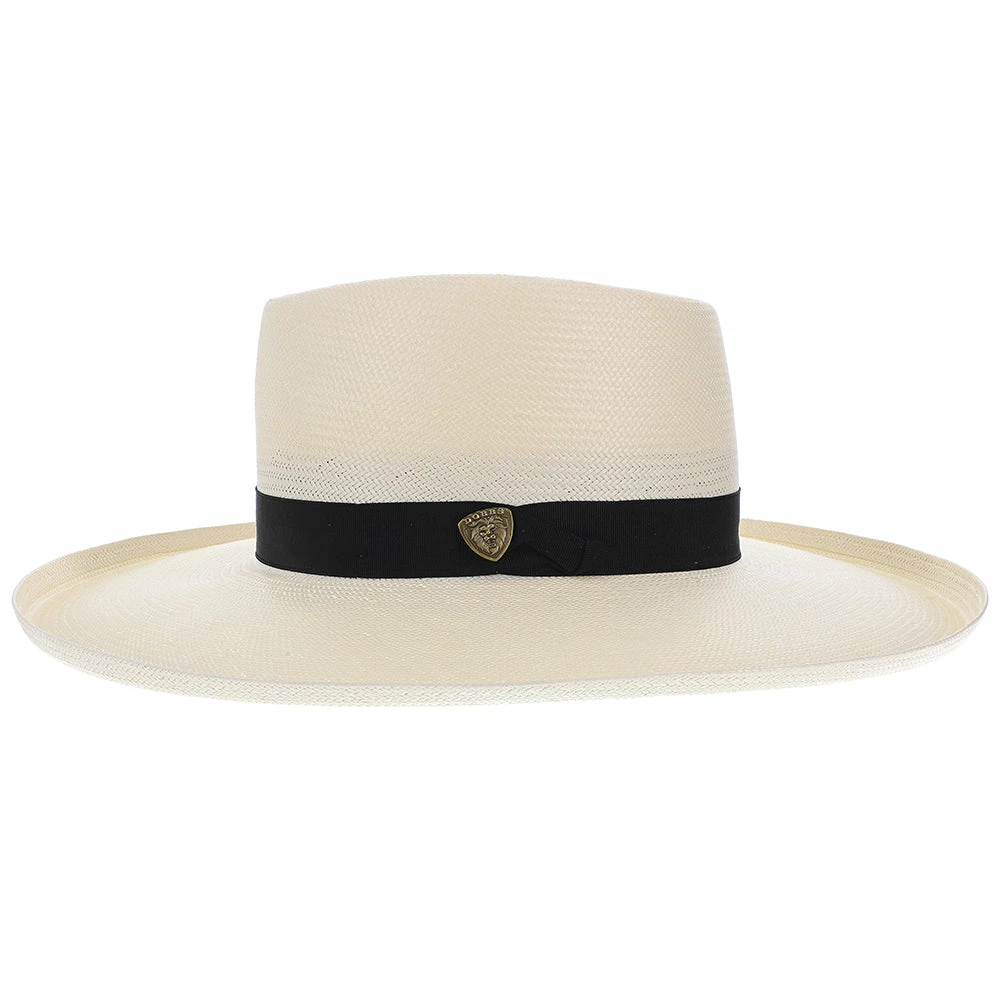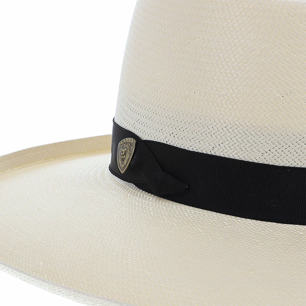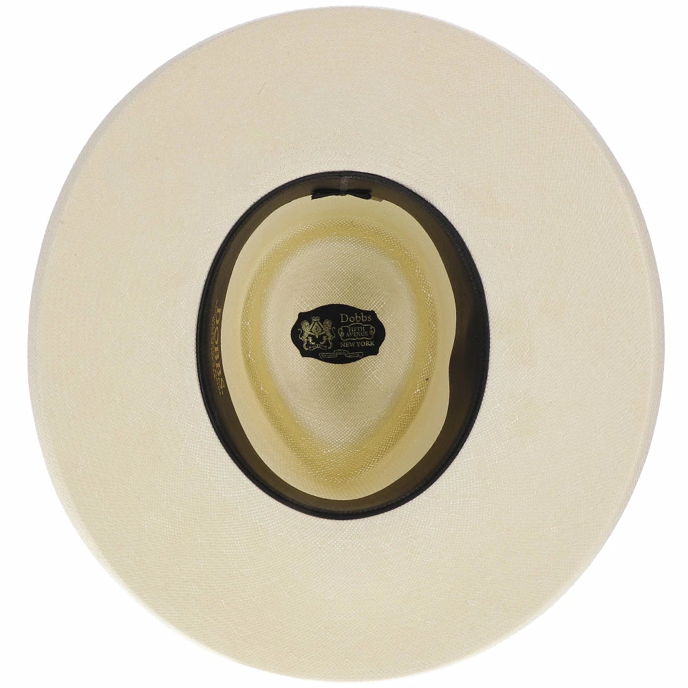 San Juan Shantung Straw Fedora Hat by Dobbs. Constructed with a firm finish shantung straw and cowhide sweatband.