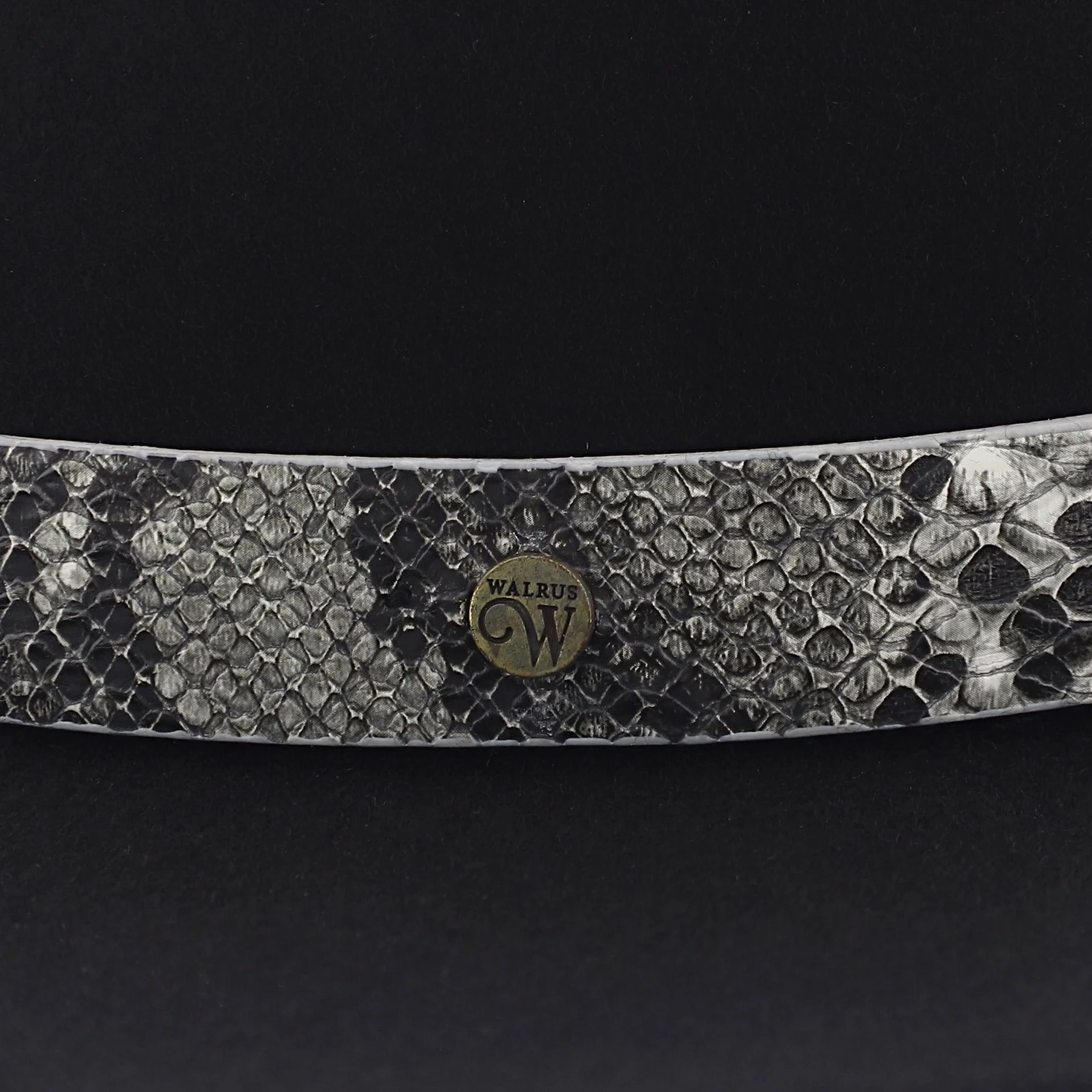 If you need a day outside, the Serpentine by Walrus Hats is a great addition to your outfit. A pair of jeans, loose sweatshirt and boots will create the rugged outdoorsman look you are seeking. The faux snakeskin hat band with Walrus logo pin can give you an exotic look no matter what you are wearing. Consider a loose, denim skirt, sandals and a cotton t-shirt paired with the hat for a playful, fun appearance as you travel around town. The hat is also perfect with a black suit, silk shirt and tie as you head into a meeting. That look is bound to impress the others at the table.