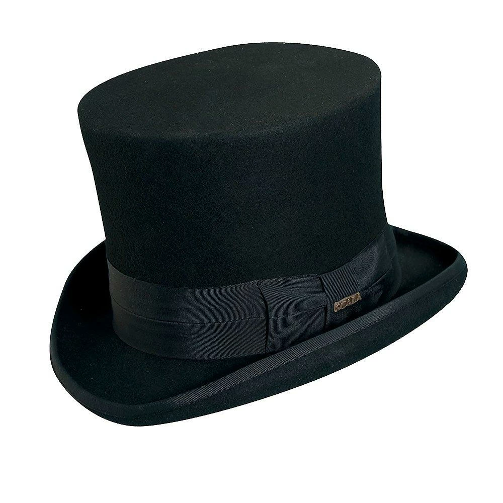 Solid quality manufacturing, Scala does an effortless job of tailoring this top hat just right. 100% wool wraps the outside, while a snug leather sweatband exquisitely secures the hat.