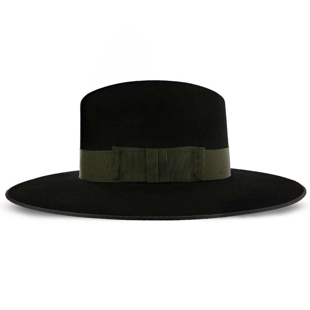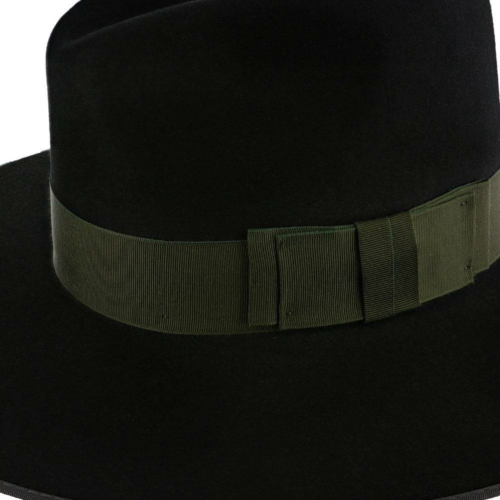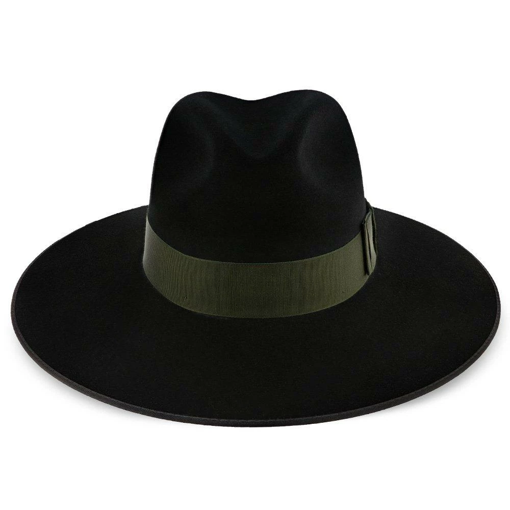 The Stetson Tri-City Wide Brim Fur Felt Fedora is a handsome modern style fedora made from a firm fur felt. Featuring a classic centerdent crown but modernizing the look with a wide 3 3/4″ bound-edge brim. The hat is balanced out with a wide hat band. Fully lined and finished inside with a leather sweatband.