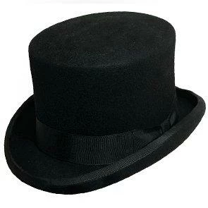 This is the “just right” top hat. This Scala wool felt top hat is five inches tall, the perfect height without being too steampunk short or Abraham Lincoln tall. In this top hat you can take yourself seriously and use for real formal events from weddings to fancy dinners, without being too obnoxious.